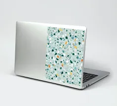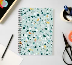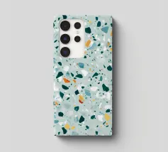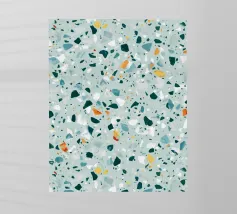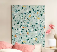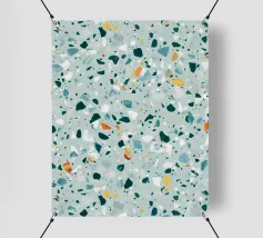 Quest'opera d'arte è un vivace motivo ispirato al terrazzo, caratterizzato da una serie di frammenti di forma irregolare nei toni del verde acqua, del bianco e del grigio, accentuati da punte di arancione e giallo caldo. I pezzi sparsi sono collocati su uno sfondo verde menta, creando una composizione armoniosa e dinamica. Il design evoca un senso di modernità e giocosità, fondendo forme organiche con un'estetica pulita e contemporanea. Perfetto per l'interior design, i tessuti e le applicazioni digitali, questo pezzo cattura il fascino senza tempo del terrazzo con un tocco artistico e fresco.