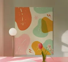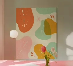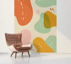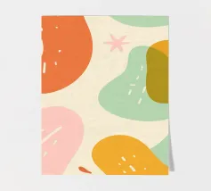 Un mix giocoso di forme organiche e colori tenui, che crea un'atmosfera rilassata e moderna. Texture leggere e dettagli simili a scarabocchi aggiungono un tocco divertente e disegnato a mano. Perfetto per aggiungere calore e un'estetica spensierata a qualsiasi spazio!