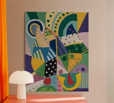 "Shapes dance, colors collide and modern abstraction is the art of energy, balance, and imagination."