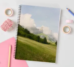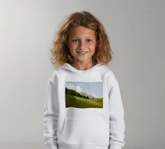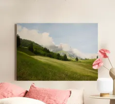 Le colline verdeggianti conducono alle aspre cime alpine, parzialmente velate da soffici nuvole. Le lussureggianti praterie e i sempreverdi sparsi creano uno scenario montano sognante e tranquillo: la natura al suo meglio.