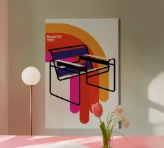 Questa stampa celebra l'iconico design modernista con una rappresentazione audace e colorata della famosa sedia. Perfetta per aggiungere un tocco di stile retro-moderno alla vostra casa o al vostro spazio di lavoro.