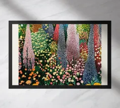 fiori modelli natura giardino piante punti colori audaci floreale forme organiche vibrante fogliame forme astratte scena naturale botanico luminoso multicolore paesaggio strutturato lussureggiante denso
