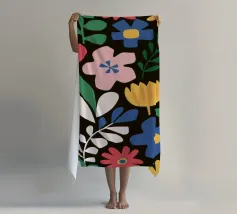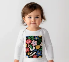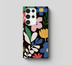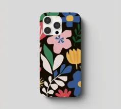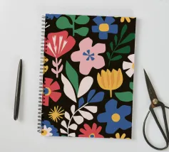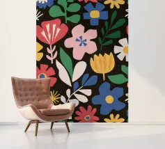 Un disegno denso e gioioso di vari fiori dai colori vivaci e allegri su uno sfondo scuro. Questa opera d'arte è una celebrazione di un giardino fiorito in tutta la sua diversità e bellezza.