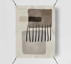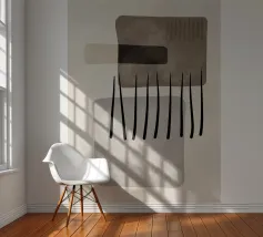 Arte digitale astratta caratterizzata da linee, forme organiche e geometriche con texture e pennellate nere in morbide tonalità terrose di marrone e beige. Arte moderna per interni essenziali, scandinavi, bohémien e boho. Godetevi l'arte digitale minimalista con forme e linee morbide.