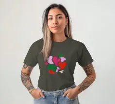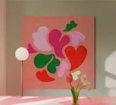 Moderno motivo per San Valentino con cuori traballanti disegnati a mano. I colori vivaci e le forme irregolari conferiscono a questo motivo un aspetto moderno.