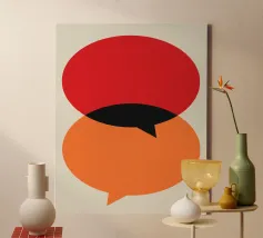 Quest'opera d'arte reimmagina una bolla di chat attraverso la lente del Bauhaus: linee pulite, geometria audace e design funzionale. Simboleggia la comunicazione moderna ridotta alla sua essenza, riflettendo l'equilibrio tra forma e funzione che definisce il movimento Bauhaus.