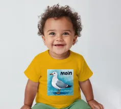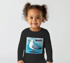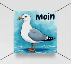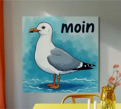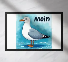 Moin, schön Tag, - così grida il gabbiano per metà giornata. Il gabbiano su una spiaggia del nord. Lì le persone sono solite salutarsi con la parola "MOIN". Buongiorno, buon pomeriggio. Un saluto naturale nel nord della Germania.