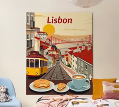 Un poster di viaggio senza tempo ispirato al fascino di Lisbona, che cattura scenari iconici in uno stile retrò vintage. Con una miscela armoniosa di colori e composizioni, questa opera d'arte porta vibrazioni nostalgiche e voglia di viaggiare sulle vostre pareti - perfetta per i viaggiatori, gli amanti del design o chiunque sogni di Lisbona.