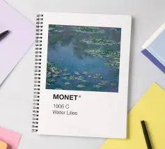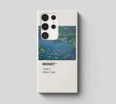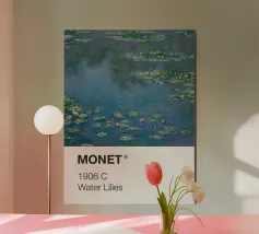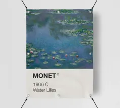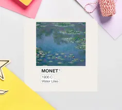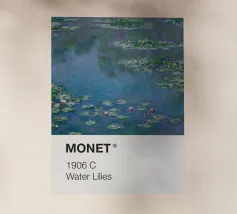 Il famoso dipinto di Monet Ninfee reimmaginato come un'elegante cartella colori Pantone.