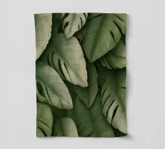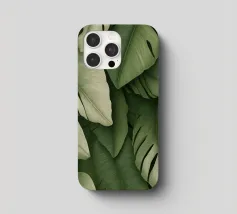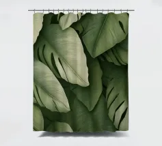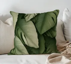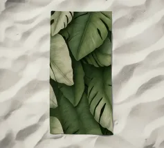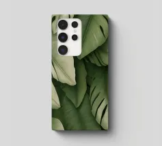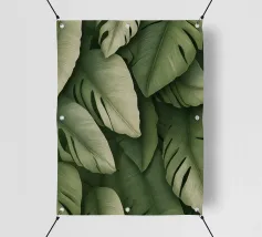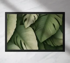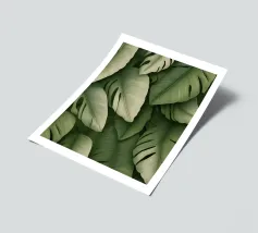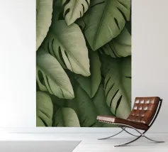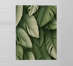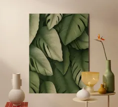 Un elegante primo piano di foglie di monstera in colori verdi di tendenza porta un tocco di natura in ogni stanza con il suo stile boho minimalista e le sue forme estetiche. Ideale per gli amanti delle piante!