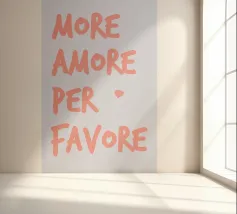 Diffondete amore e leggerezza con "Più Amore Per Favore". Questa incantevole illustrazione lettering presenta il motto ispiratore che chiede più amore in un carattere casual color melone su un morbido sfondo color lavanda. La combinazione di colori vivaci e design rilassato invita a sognare e a divertirsi. Posizionate questo motivo nella vostra camera da letto per creare un'atmosfera tranquilla e rilassata o nel vostro spazio di lavoro per ricordarvi l'importanza dell'amore e della serenità.
