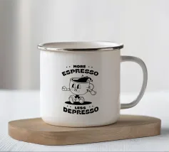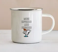 Bandite la letargia e migliorate il vostro umore con questo allegro disegno! Il disegno "More Espresso Less Depresso" è il promemoria perfetto per godersi una tazza di caffè e mantenere la salute mentale.