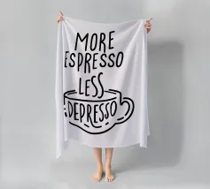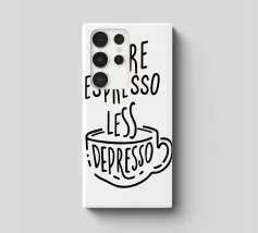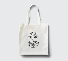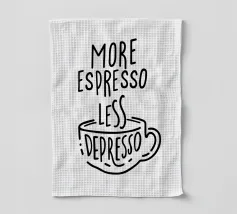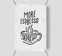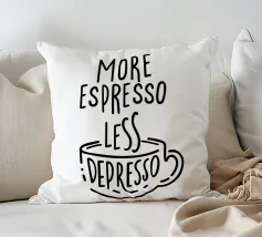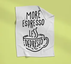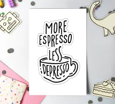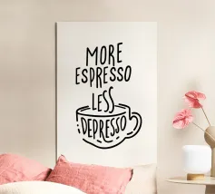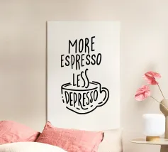 Questo design tipografico porta il buon umore direttamente in tazza, con uno slogan sfacciato che dichiara che l'espresso è un toccasana per l'umore. La tazza da caffè, disegnata a mano, è stilizzata e ben delineata, con la frase "MORE ESPRESSO LESS DEPRESSO" in una tipografia giocosa e in grassetto. L'umorismo funziona come un campanello d'allarme: affascinante, leggermente ironico e pieno di energia. Allo stesso tempo, il design è universalmente comprensibile, sia come frase per il tavolo della cucina, sia come poster in un bar o come regalo per i veri appassionati di espresso.