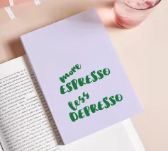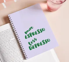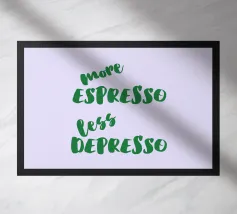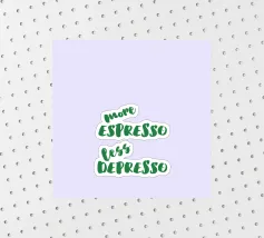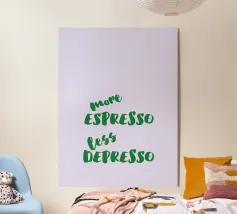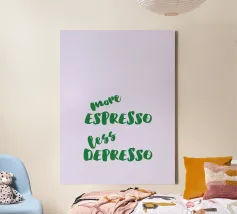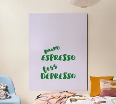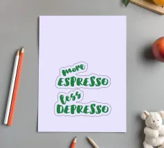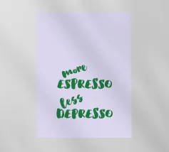 Questo disegno presenta la frase "More Espresso Less Depresso", in un simpatico stile disegnato a mano. Si tratta di una frase spensierata che suggerisce che il caffè, in particolare l'espresso, può migliorare l'umore e combattere i sentimenti di tristezza o depressione. Esprimete la vostra filosofia di vita attraverso questo disegno d'ispirazione, lasciate che il vostro spazio fiorisca con morbidezza, giocosità e design artistico.