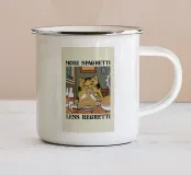 Questa giocosa opera d'arte raffigura un gatto soddisfatto che si gode un abbondante piatto di spaghetti, irradiando conforto e umorismo. Con il suo stile retro comico e la frase spiritosa "Più spaghetti, meno rimpianti", ricorda di assaporare i semplici piaceri della vita. Perfetto per gli amanti del cibo, per gli appassionati di gatti e per tutti coloro che apprezzano una motivazione spensierata.