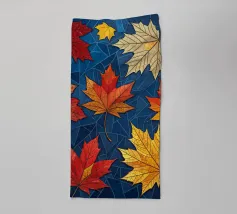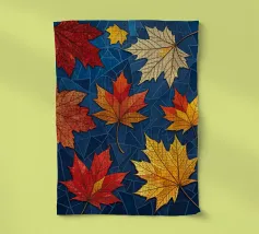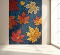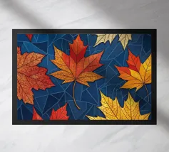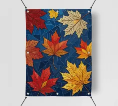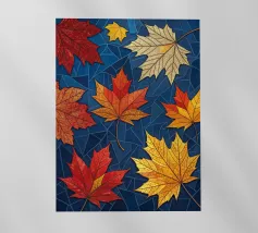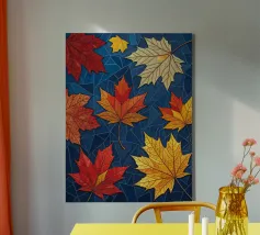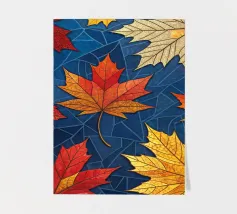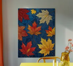 Questo splendido pezzo cattura l'essenza dell'autunno con un vibrante mosaico di foglie d'acero cadute. I ricchi rossi, gli arancioni infuocati e i gialli dorati si stagliano su uno sfondo blu intenso e strutturato, creando un contrasto sorprendente. Ogni foglia è resa con dettagli intricati, dalle delicate venature ai sottili cambiamenti di colore, dando all'opera un senso di vita e movimento. Lo sfondo a mosaico aggiunge profondità e un tocco artistico unico, rendendo questa opera molto più di una semplice scena naturalistica. È una celebrazione della bellezza della stagione e della maestria del mondo naturale. Perfetto per aggiungere una guerra