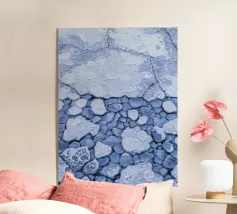 Questo straordinario motivo mostra la bellezza unica delle lastre di ghiaccio ghiacciate disposte come un mosaico artistico. I toni freddi del blu e le forme geometriche lo rendono perfetto per ambienti moderni ed eleganti. Che si tratti di un murale, di una cover per cellulare, di un cuscino o di una tazza, questo disegno porta la fresca eleganza dell'inverno direttamente a casa vostra. Ideale per gli amanti dell'arte alla ricerca di motivi naturali insoliti.