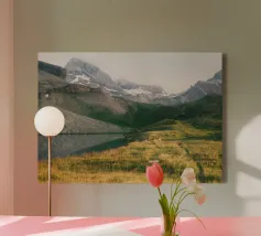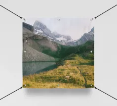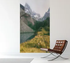 Questa fotografia accattivante offre una vista serena di un lago di montagna, che riflette perfettamente le cime aspre e le chiazze di neve circostanti. Parzialmente ricoperte di vegetazione, le maestose montagne si protendono verso un cielo parzialmente nuvoloso, aggiungendo un tocco di misticismo al paesaggio. Ideale per gli amanti della natura e per coloro che apprezzano la tranquilla bellezza dell'aria aperta, questa immagine conferisce un senso di pace e di splendore naturale a qualsiasi spazio.