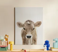 Stimolate l'amore del vostro bambino per gli animali con il nostro adorabile disegno di un vitello mucca. Un'idea che affascinerà qualsiasi cameretta o stanza del bambino.