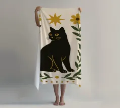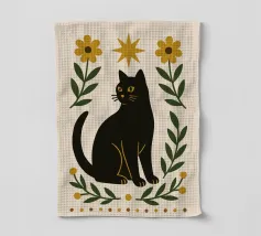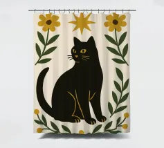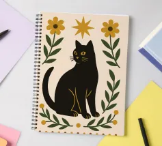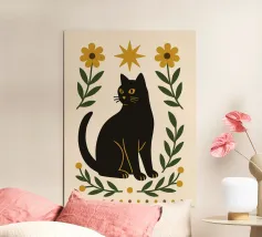 Questa incantevole opera d'arte raffigura un gatto nero stilizzato con accattivanti occhi gialli, serenamente seduto tra vibranti fiori gialli e fogliame verde intenso. Una radiosa stella dorata corona la composizione, aggiungendo un tocco di magia ed energia cosmica. Ideale per gli amanti dei gatti e per chi è alla ricerca di decorazioni stravaganti e ispirate alla natura con un sottile tocco mistico, questo pezzo combina elementi grafici audaci con una tavolozza calda e invitante, perfetta per aggiungere fascino a qualsiasi spazio.