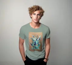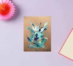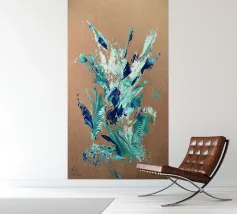 Quest'opera è realizzata su un foglio di cartone senza colorazione, lasciando visibili sullo sfondo le fibre di legno che la compongono. L'obiettivo è quello di presentare un'opera dipinta che mantenga un aspetto grezzo, offrendo un supporto che evochi la sua origine naturale. Il risultato è un'armonia e una maggiore facilità di integrazione in diversi stili di arredamento.