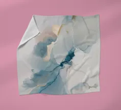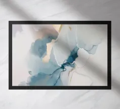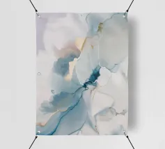 Nuvole floreali blu pallido emergono da una soffice nebbia in un delicato sogno acquerellato.