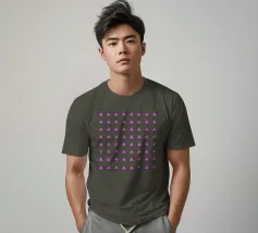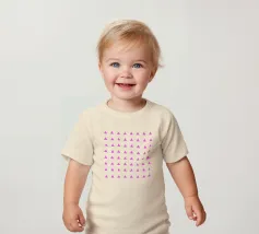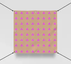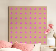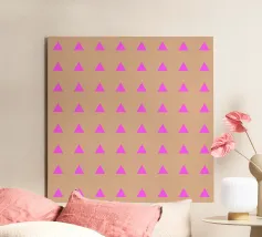 Motivo geometrico elegante e minimalista con triangoli rosa neon su sfondo beige latte.