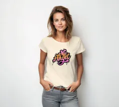 Una fresca scritta a mano in stile graffiti per ragazze, signore, ragazze, signore sicure di sé, forti e orientate agli obiettivi. Niente angeli. Voluto con una strizzatina d'occhio. Molto suggestivo. Lettering fresco. Disegnato a mano. Assolutamente forte e unico.