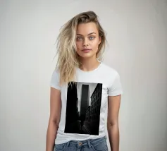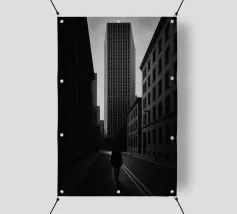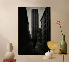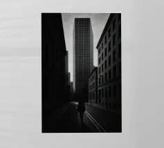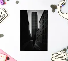 Un uomo, una città. Questo poster cattura l'attimo sospeso di una passeggiata solitaria per le strade vuote di New York, sullo sfondo di infiniti grattacieli. Una scena alla Hopper, con cemento e silenzio. Poetico, freddo, potente.