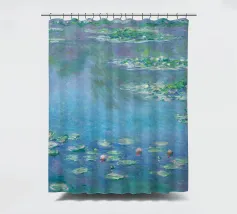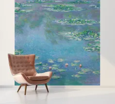 Una vista ravvicinata dello stagno di ninfee di Monet, con fiori galleggianti e riflessi di cielo e fogliame che si dissolvono in un arazzo di colori. Nessun orizzonte o linea di costa caratterizza la scena: solo acqua infinita. Pennellate: Tratti fluidi e sciolti fondono ninfee, acqua e riflessi in una superficie armoniosa e dinamica. Strati spessi di impasto creano consistenza, mentre passaggi più morbidi suggeriscono profondità. Tavolozza: Verdi, blu e viola vibranti contrastano con rosa e gialli caldi, evocando diverse ore del giorno e stagioni.Dipinti antichi, decorazioni murali senza tempo, stampe d'arte da galleria, decorazioni artistiche per la casa, dipinti rinascimentali.