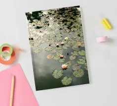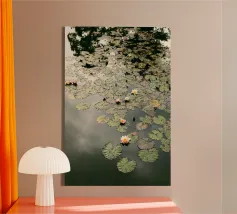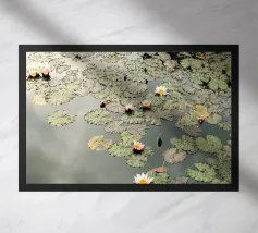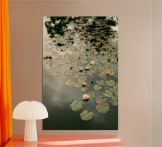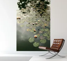 Tra di esse fioriscono delicate ninfee, i cui petali rosa, bianchi o gialli si stagliano in un grazioso contrasto con l'acqua scura sottostante".