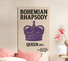 Una canzone per l'eternità - con una corona per il più grande capolavoro della storia del rock: "Bohemian Rhapsody" dei Queen. Questo poster combina la tipografia classica con il simbolismo reale, nello stile retrò degli anni '70. Un must per i fan dei Queen, gli amanti della musica e i collezionisti di suoni iconici. Fa parte della serie Lyrics & Legends: le 100 più grandi canzoni come stampe artistiche.