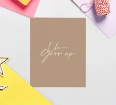 Un-Grow Up, Motivational Lettering, Funny Mocha Mousse, Minimal Typography Art Print by 83 Oranges Uma Gokhale.