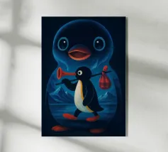 Portate un tocco di nostalgia e di umorismo nel vostro spazio con questa giocosa opera d'arte di un pinguino dei cartoni animati, ispirata all'amato pingu classico. Con un simpatico pinguino che intraprende un viaggio stravagante, con tanto di bastone e le iconiche zampe rosse, questo pezzo cattura il cuore di tutti gli amanti dei pinguini e dei fan di Noot Noot. Che siate amanti dei disegni di animali divertenti, dell'estetica vintage o del fascino genuino di un meme, questa stampa unisce umorismo, vibrazioni pop art e l'intramontabile simpatia dei pinguini. Perfetta per la cameretta dei bambini, per la stanza dei bambini o per una parete a tema retrò, questa stampa aggiunge allegria, fascino e un pizzico di personalità animale alla stanza dei bambini.