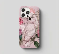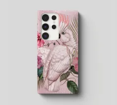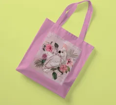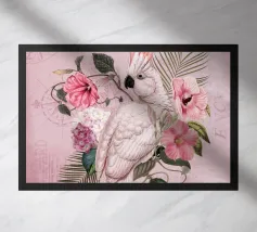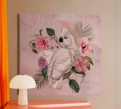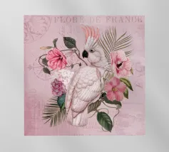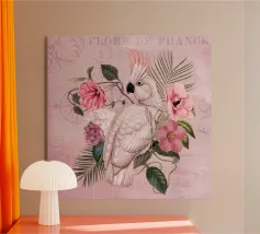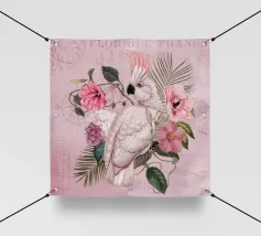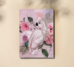 Collage artistico nostalgico con uccello cacatua esotico e bel fiore