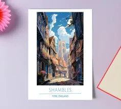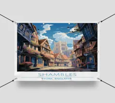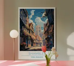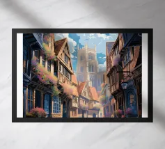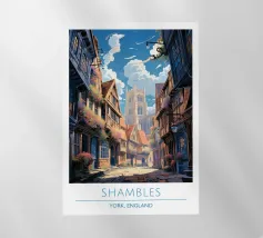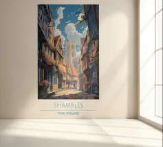 Entrate nel fascino medievale di The Shambles a York, in Inghilterra, con questa accattivante stampa d'arte digitale. L'immagine cattura la famosa strada stretta e acciottolata con i suoi edifici sporgenti a graticcio, ornati da fiori vivaci. Sullo sfondo, la maestosa presenza della cattedrale di York si erge maestosa sotto un cielo blu brillante. Realizzata in un caldo stile di illustrazione vintage, questa opera d'arte mette in risalto l'atmosfera storica e pittoresca. Questo download digitale di alta qualità viene fornito con una superba risoluzione di 7000x5000 pixel a 300 dpi, che garantisce un'eccezionale nitidezza e ricchezza di dettagli per un'immagine di alta qualità.