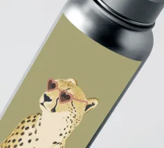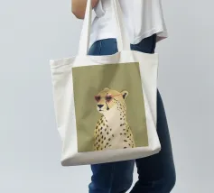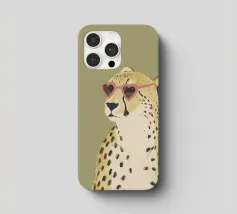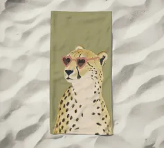 Questa simpatica illustrazione di un ghepardo con occhiali da sole a forma di cuore porta umorismo e gioia nel mondo animale. La tavolozza di colori minimalista di verde salvia, beige e marrone sottolinea il carattere carismatico dell'animale selvatico. Ideale per qualsiasi interno, crea una divertente sensazione di safari piena di amore!