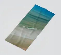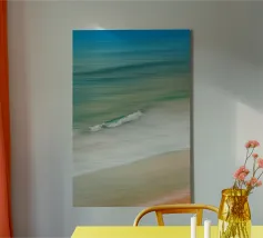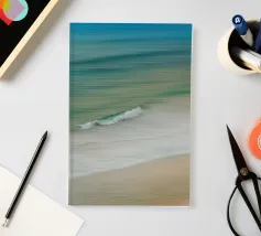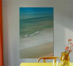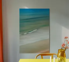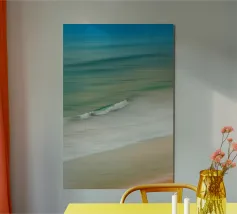 Il movimento del mare in linee dolci e fluide: Grazie a un movimento mirato della fotocamera, in questa foto l'acqua, le onde e la sabbia si fondono in una composizione armoniosa. Le tonalità pastello del blu, del verde e del beige trasmettono tranquillità e ampiezza, mentre la singola onda che si infrange aggiunge dinamismo all'immagine.