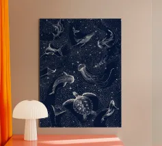 Balene, razze, squali e tartarughe marine scivolano attraverso la distesa dello spazio, formando immagini surreali e potenti. La graziosa integrazione della natura nell'arte digitale espande i nostri orizzonti e libera il nostro spirito. Questi disegni soddisfano il nostro desiderio di natura e l'immensità dell'essere. Le mie illustrazioni, caratterizzate da uno stile distintivo in cui convergono fauna e umanità, oceani e cosmo, offrono un senso di libertà e l'euforia della vita.
