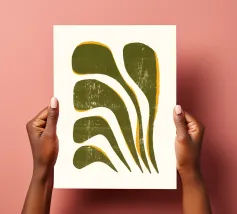 Forme fluide, strutture delicate e un armonioso gioco di verde oliva e giallo caldo: questa moderna opera d'arte unisce l'ispirazione botanica all'eleganza astratta. Le linee curve conferiscono al motivo movimento e calma: un design che emana naturalezza e un senso di stile minimalista. Ideale per chi ama le forme organiche e l'arte contemporanea.