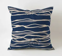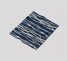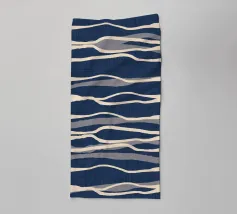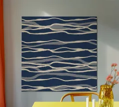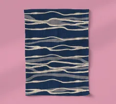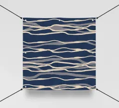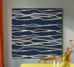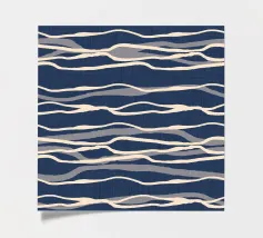 Strisce di onde oceaniche stilizzate in una ricca tonalità di blu retrò. Questo disegno minimale ma fluido cattura il movimento del mare con un tocco nautico vintage. Una stampa perfetta per case al mare, interni costieri o spazi moderni di metà secolo.