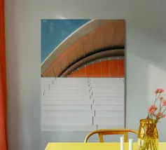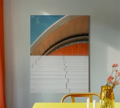 Casa delle culture del mondo a Berlino: la scala bianca della HWK è in netto contrasto con la calda facciata arancione e forma una composizione grafica di grande effetto.