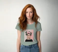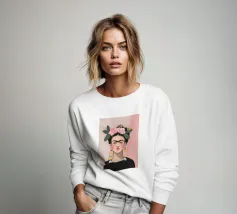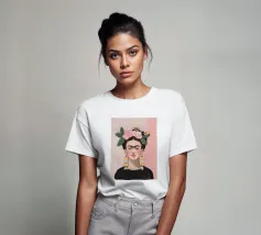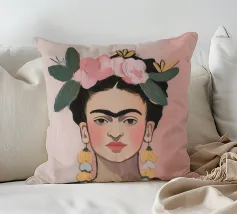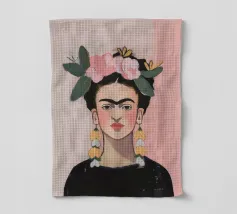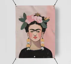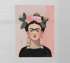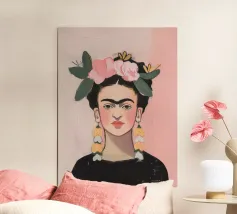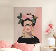 Questo affascinante ritratto di Frida Kahlo la ritrae con una colorata corona di fiori e orecchini floreali, in tenui colori pastello, e incarna la combinazione di arte messicana e femminismo.
