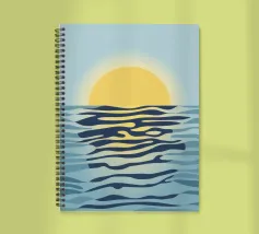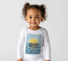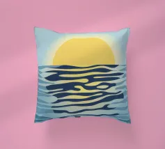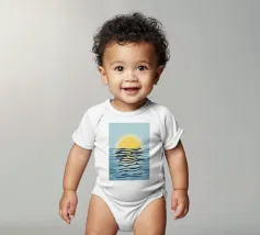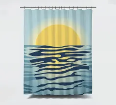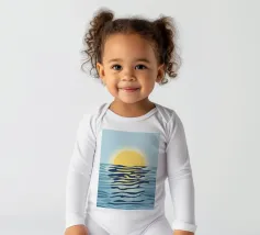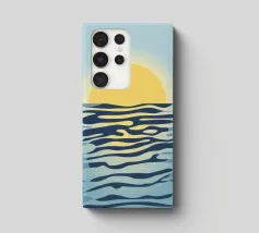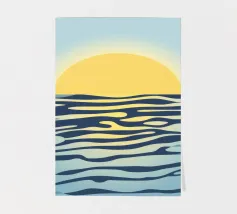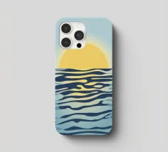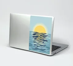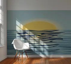 Una tranquilla scena di tramonto in cui il sole scende sotto l'orizzonte dell'oceano, riflettendo le sfumature dorate sull'acqua.