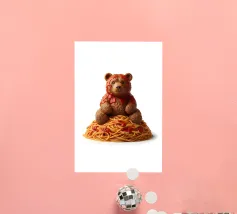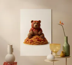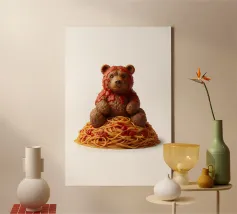 Questo giocoso disegno "Meatball Bear on Spaghetti" unisce l'adorabile arte dei personaggi alla deliziosa creatività alimentare. Con un affascinante orso scolpito in polpette e seduto su un mucchio di spaghetti e salsa alla marinara, questa opera d'arte dona umorismo, calore e dettagli appetitosi a qualsiasi spazio. Perfetto per gli amanti del cibo, per l'arredamento della cucina, per le camere dei bambini o per chiunque ami le illustrazioni stravaganti e fantasiose. Aggiungete un tocco divertente e gustoso alle vostre pareti con questa opera d'arte unica a tema alimentare.