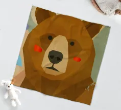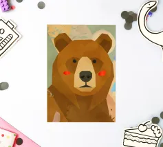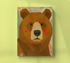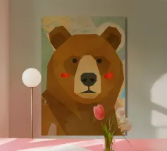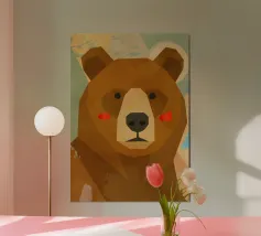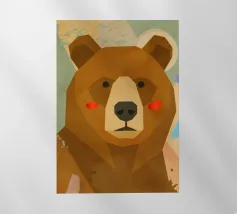 Un orso disegnato da forme geometriche con colori caldi e uno sfondo astratto: un'interpretazione moderna della forza e della calma naturali.Orso graficamente ridotto in uno stile di design moderno Colori caldi e terrosi con accenti contrastanti Espressione di forza, serenità e vicinanza alla natura Utilizzo versatile per scopi creativi o decorativi Motivo artistico ed elegante con un tocco personalizzato