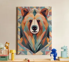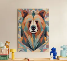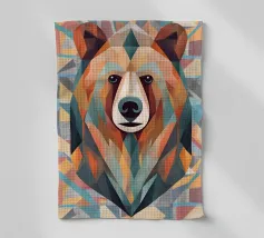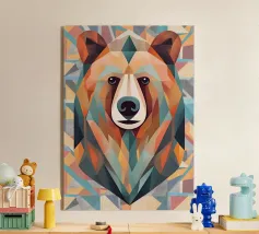 Questa accattivante opera d'arte reimmagina il nobile orso in uno stile astratto e geometrico. Con toni tenui di blu, arancione e pesca, il disegno combina elementi naturali con un'estetica moderna. Il volto dell'orso, sullo sfondo di alberi astratti e del cielo illuminato dalla luna, trasmette tranquillità e forza. L'uso accurato del colore e della forma conferisce a questo pezzo un'atmosfera contemporanea e rilassante, perfetta per chi ama la vita all'aria aperta o le rappresentazioni artistiche e uniche degli animali. Questo disegno è perfetto sia per i bambini che per gli adulti e può essere applicato su abiti, accessori o decorazioni per la casa.