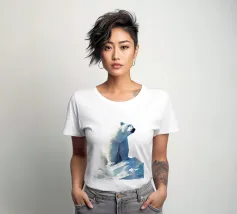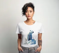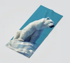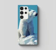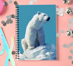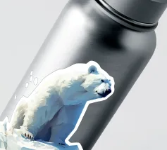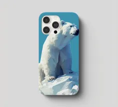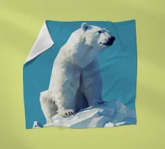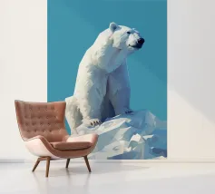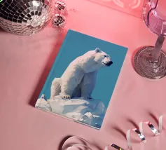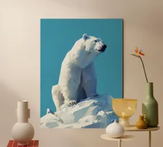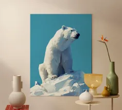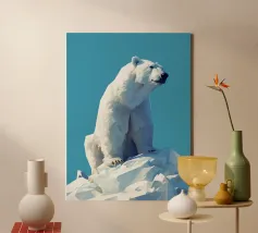 Appollaiato su un blocco di ghiaccio, il possente orso bianco guarda in lontananza, incarnando resilienza e solitudine. L'aria frizzante e la brina scintillante fanno da cornice alla sua potente presenza, mentre i blu e i bianchi profondi del paesaggio ghiacciato contrastano con la sua folta e maestosa pelliccia. Una visione suggestiva della bellezza artica.