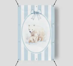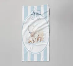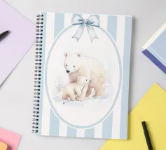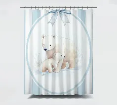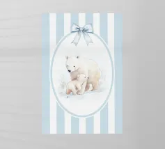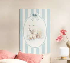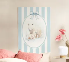 Una commovente illustrazione di un orso polare e del suo cucciolo in un ambiente innevato, che mostra la bellezza della fauna selvatica e dei legami familiari.
