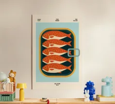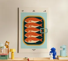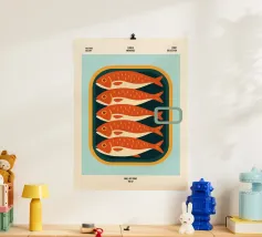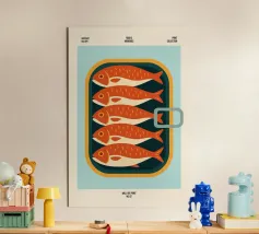Cinque sardine, graficamente allineate in una scatola di latta: iconiche, retrò e piene di ricordi di picnic, campeggio o serate mediterranee. "Food Memories No. 02" combina forme chiare e umorismo nostalgico. Ideale per le cucine moderne, per gli amanti del vintage o per i fan della food art minimalista. Fa parte della serie "Food is Memories" - semplice, iconica, affascinante.